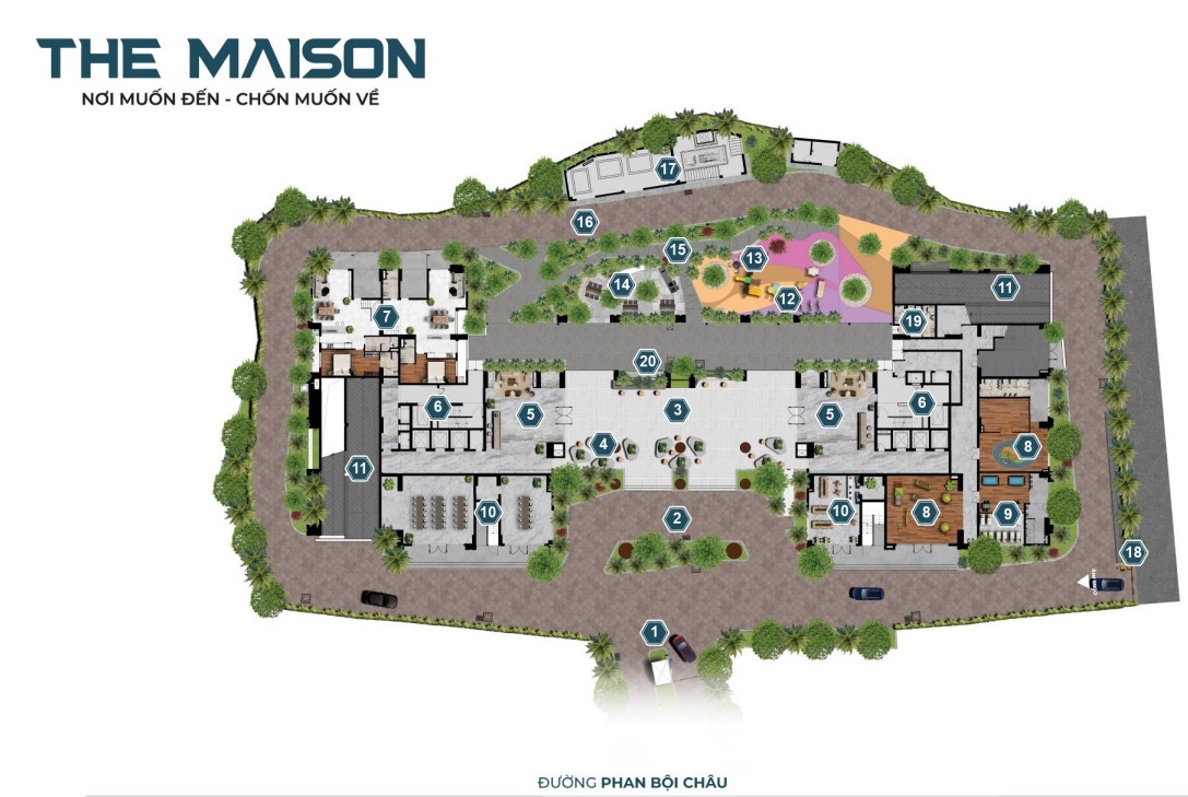 | 2. Khu vực đón/trả khách | 12. Khu vui chơi trẻ em ngoài trời |