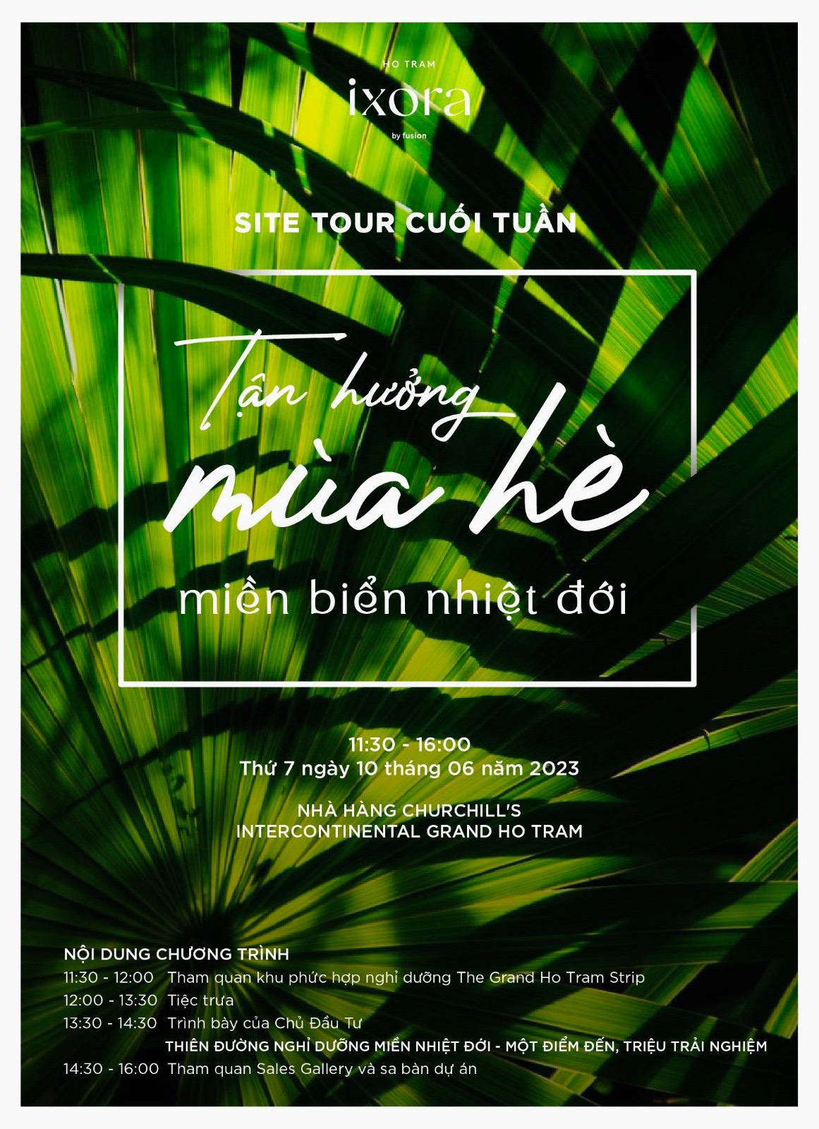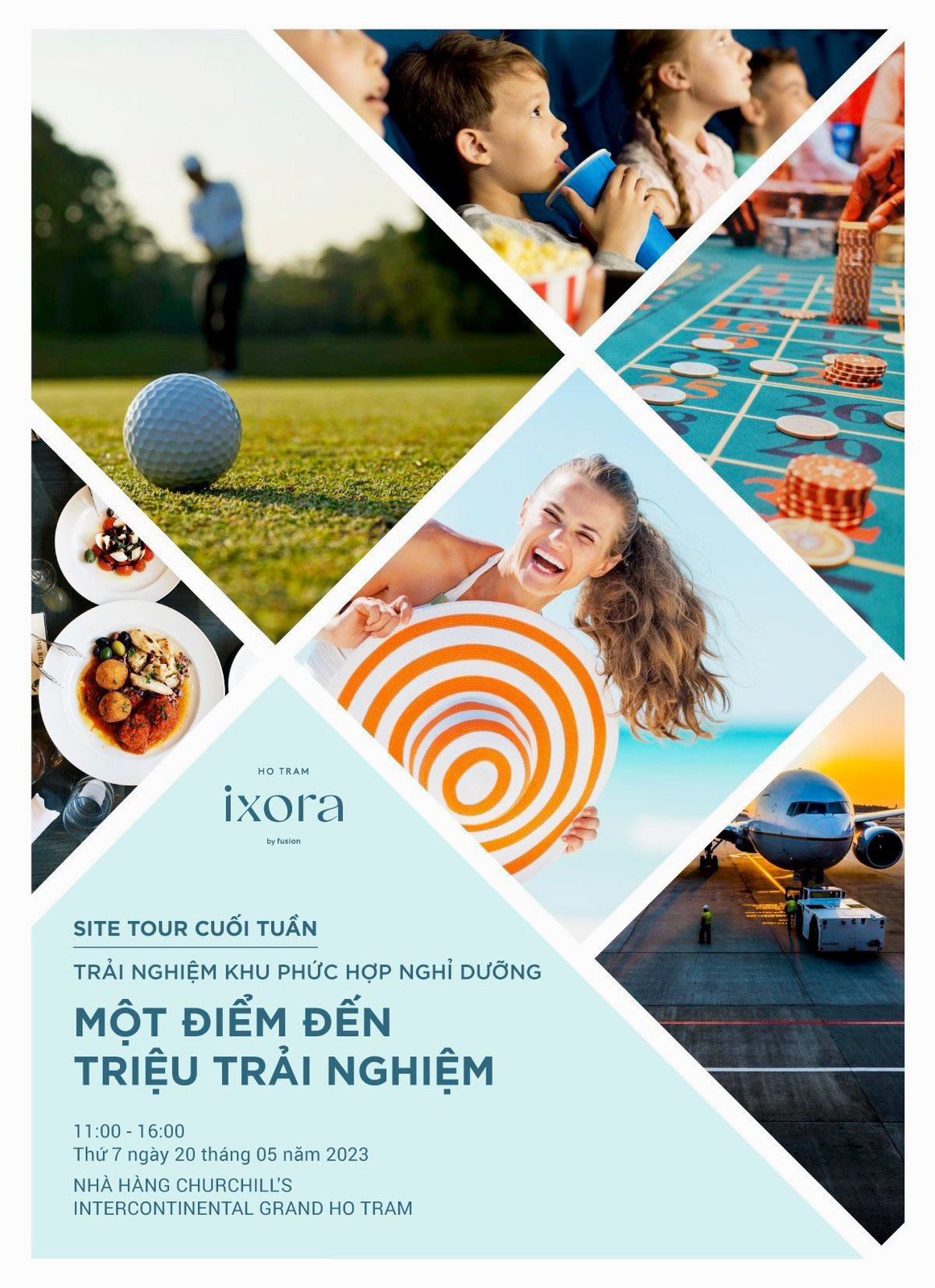 Ixora Hồ Tràm “Về với thiên nhiên Rừng & Biển” tiệc trà, coffee, buffe ngày 27.5 diễn ra tại NHÀ HÀNG CHURCHILL”S - trong quần thể casino, vui chơi giải trí ks nghỉ dưỡng KHÁCH SẠN INTERCONTINENTAL GRAND HO TRAM với bãi biển trắng mịn trải dài, sạch đẹp, sóng yên phẳng lặng, tham quan sân golf Bluffs Hồ Tràm Strip Vũng Tàu.